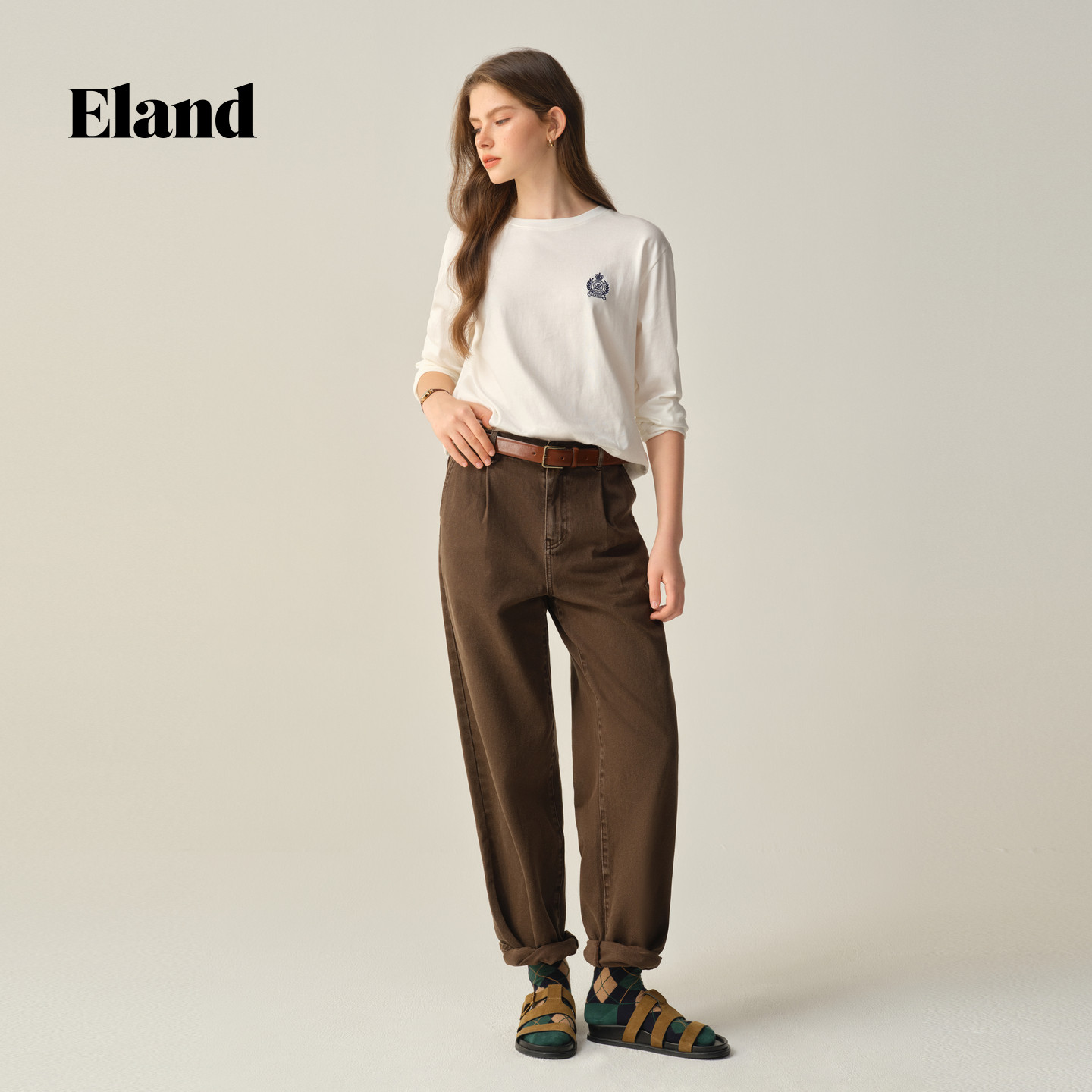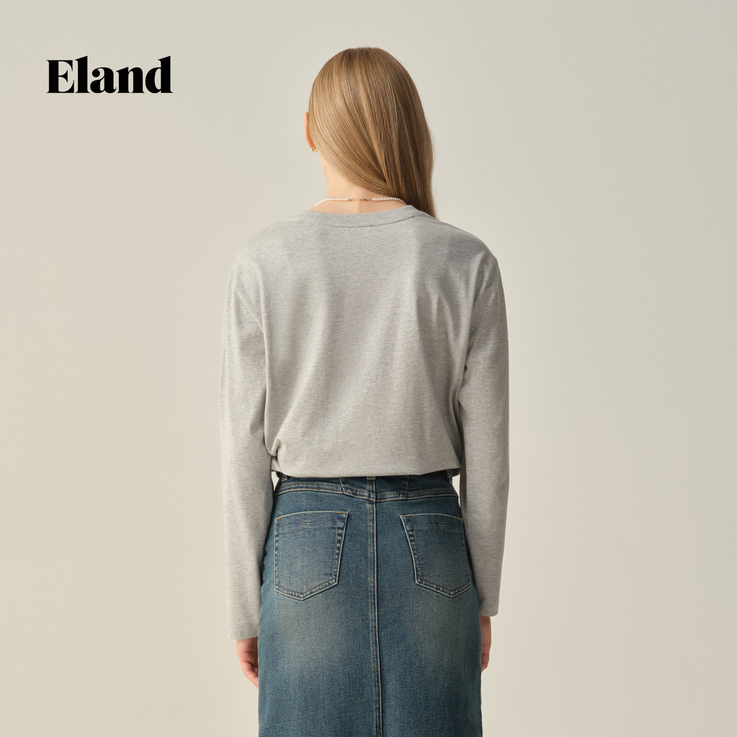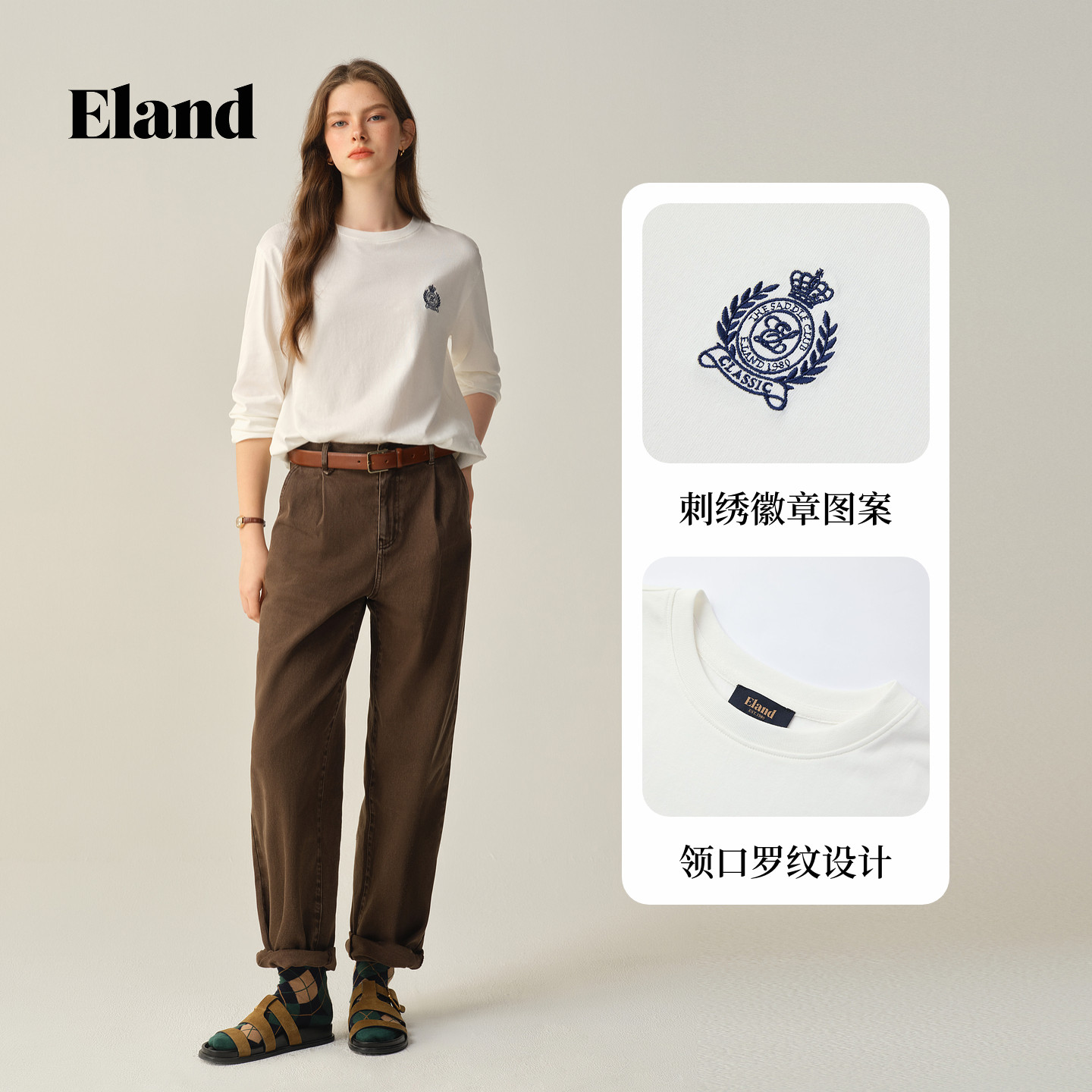 【100%棉】Eland衣恋T恤女圆领长袖纯色休闲上衣2025冬季新款