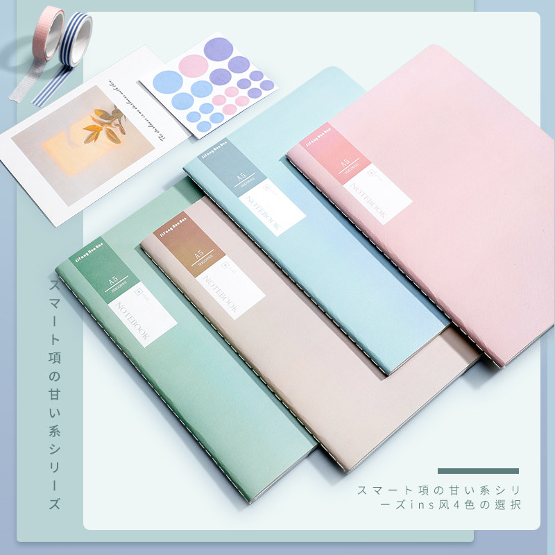 甜系暖色简约笔记本子ins文艺精致记事本缝线本加厚A5车线本横线