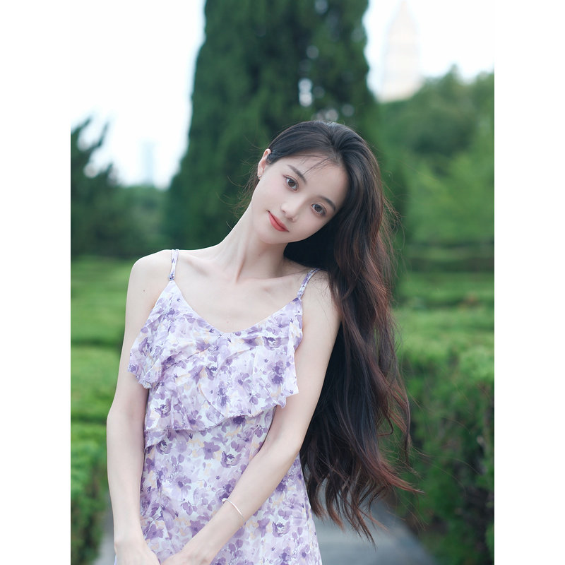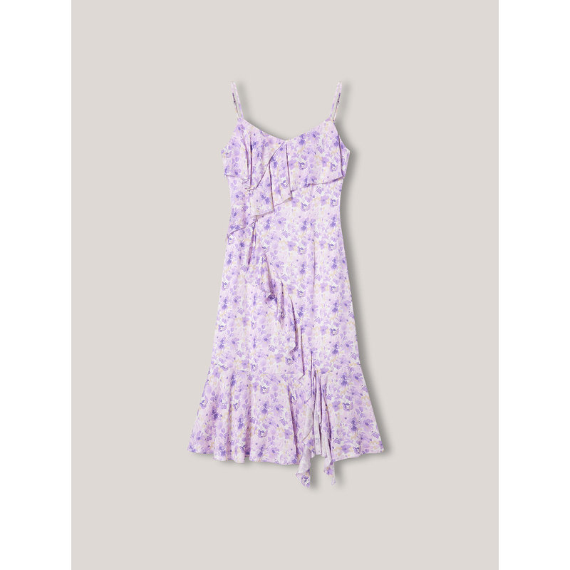 【真丝系列】Goodland美地夏季浪漫风印花吊带连衣裙