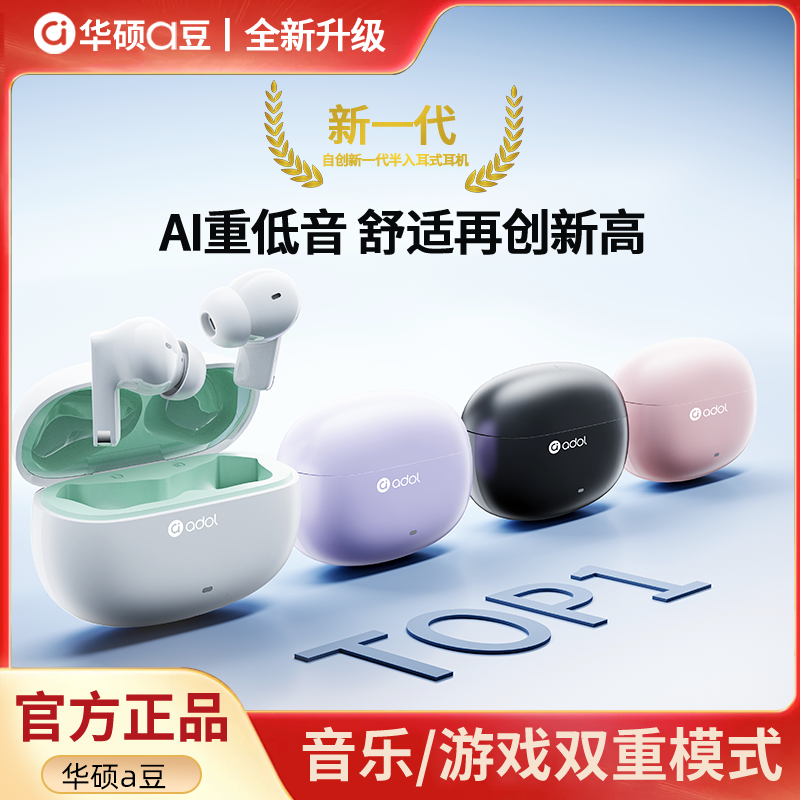 华硕a豆无线蓝牙耳机入耳式短柄2026新款运动跑步听歌适用于苹果