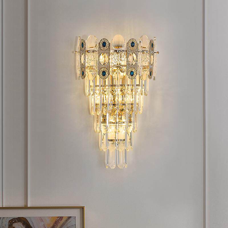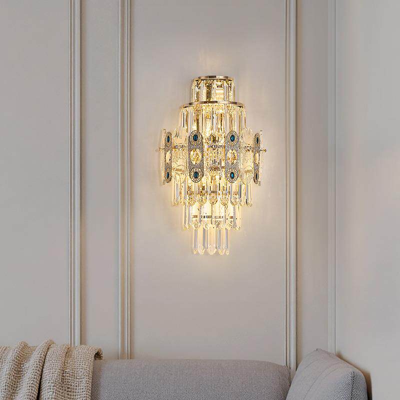 铧锒客厅香槟金壁灯2025新款轻奢水晶创意个性卧室床头水晶壁灯