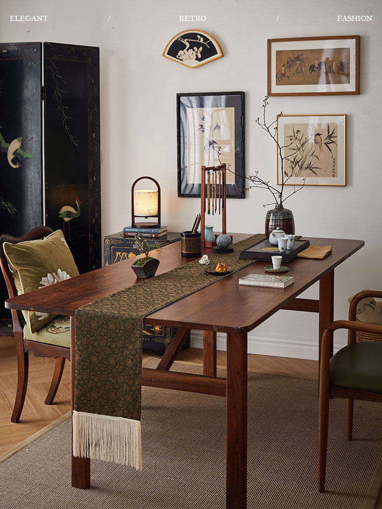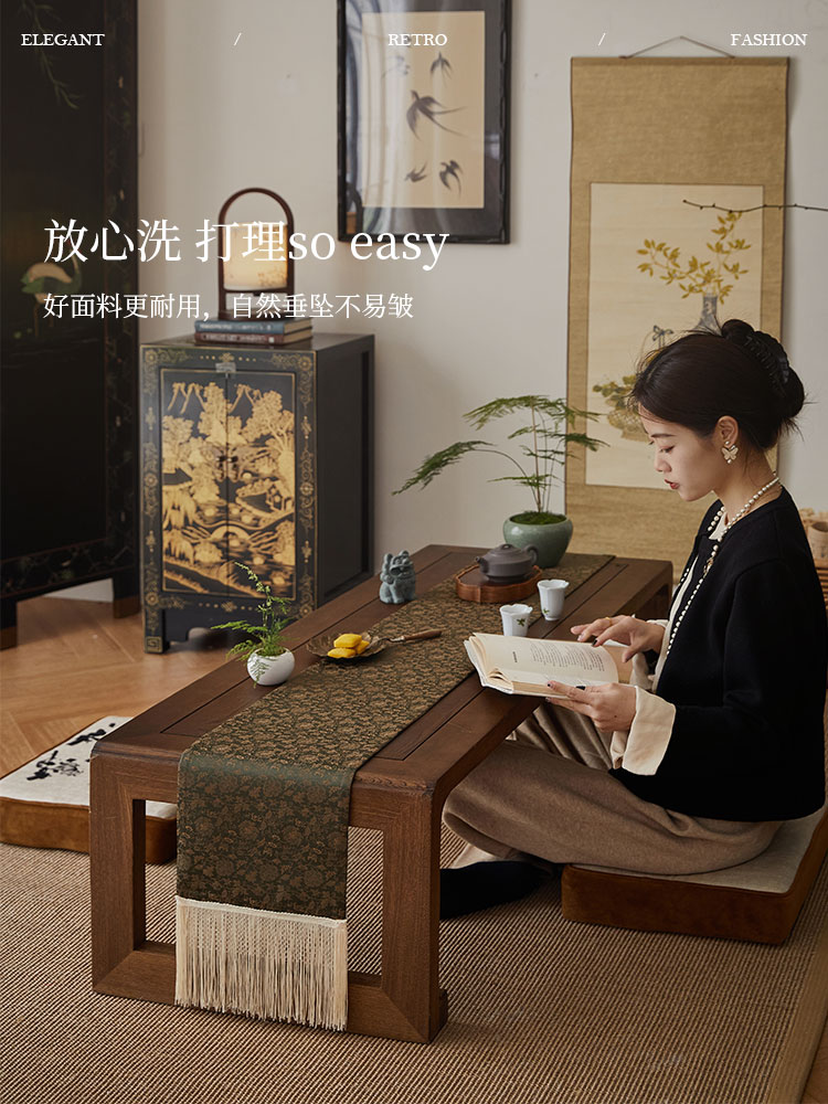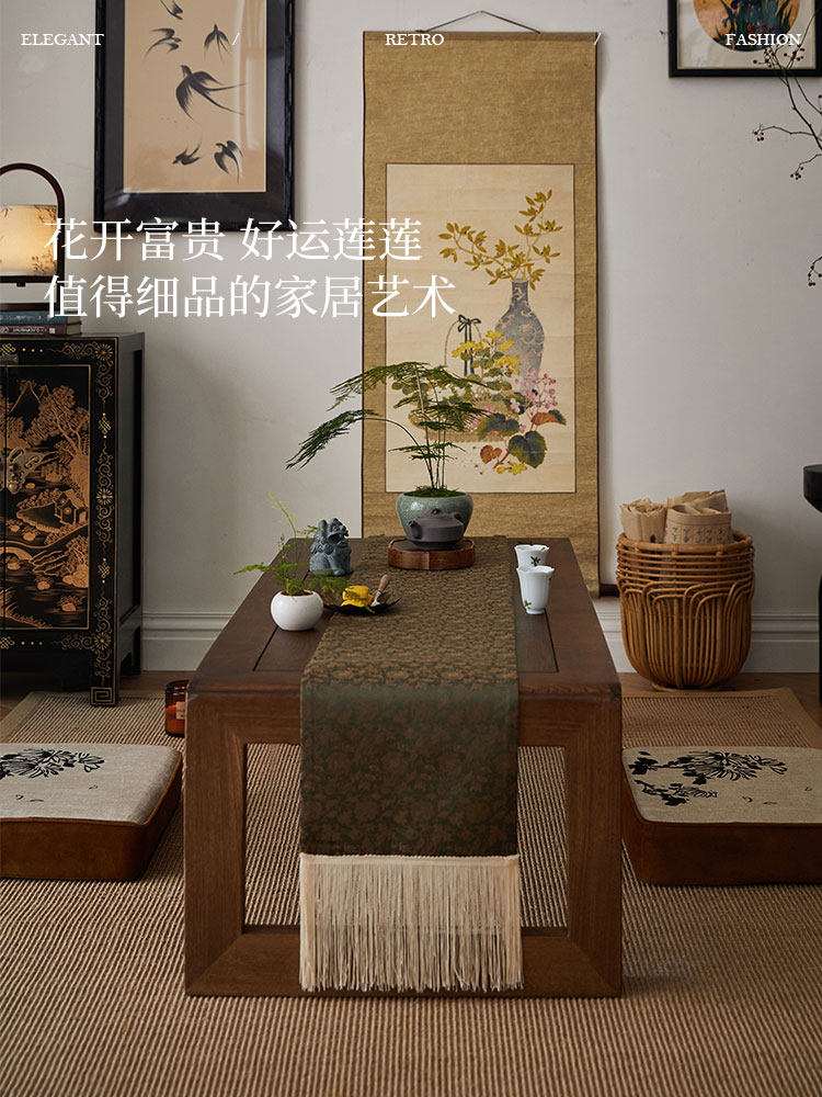 【孤品4折】蜡笔派素心莲茶旗中式复古高级感中国风茶几盖布桌旗