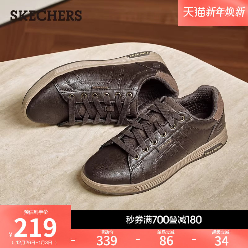 斯凯奇舒适百搭秋冬男鞋商务休闲鞋通勤平底板鞋时尚复古秋冬皮鞋