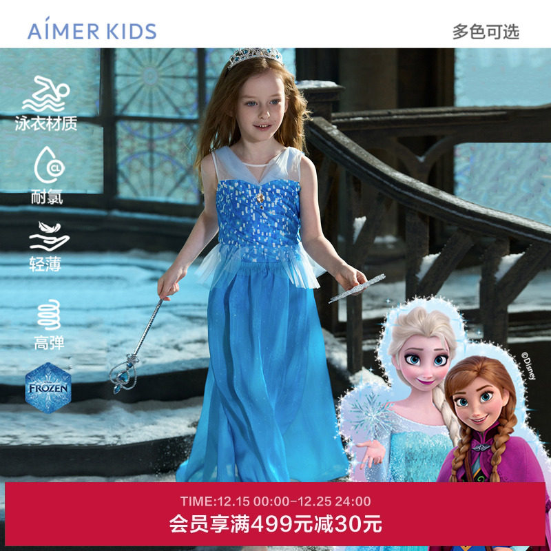 爱慕儿童艾莎冰雪奇缘系列公主女孩耐氯高弹轻薄连体泳衣裙套装