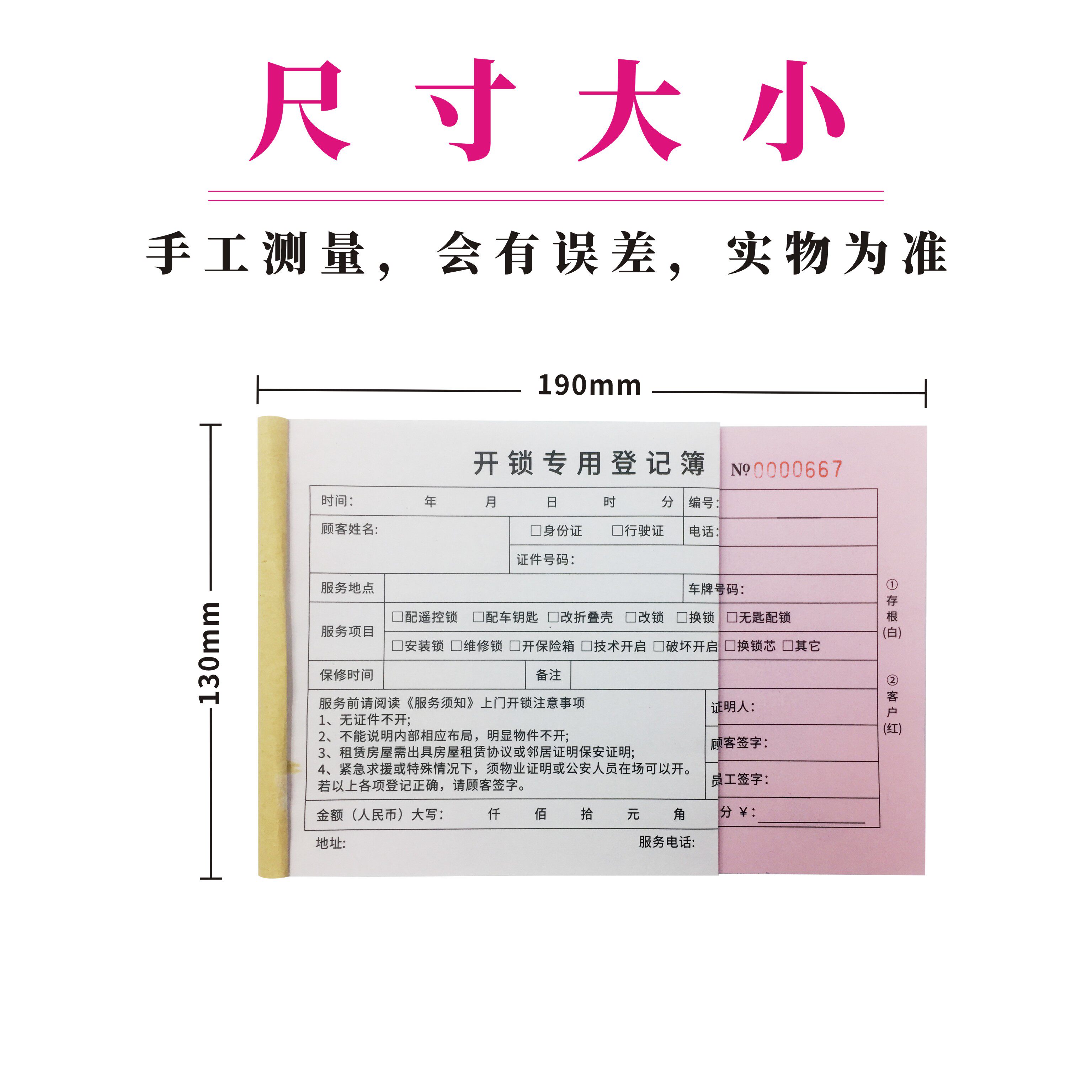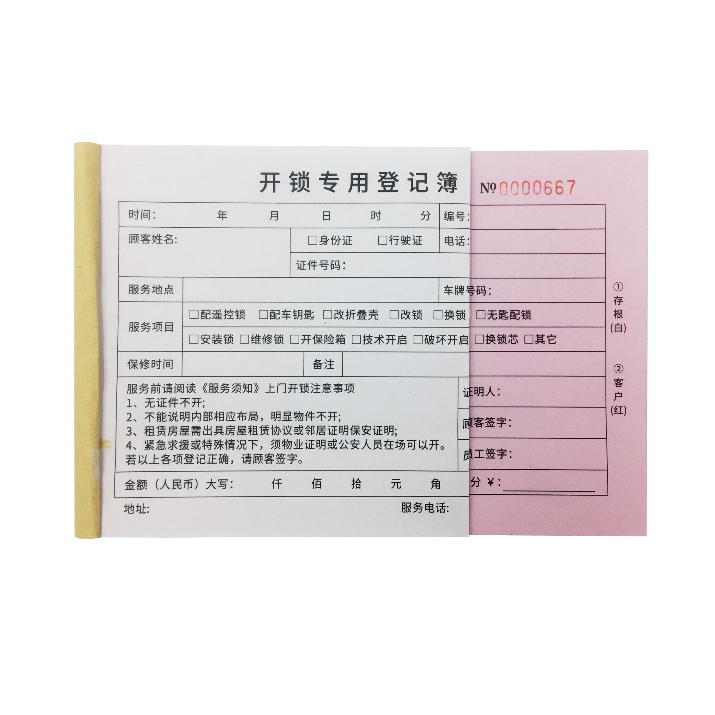 开锁专业登记簿订制修锁登记薄定制换锁公司登记票据单据收据印刷