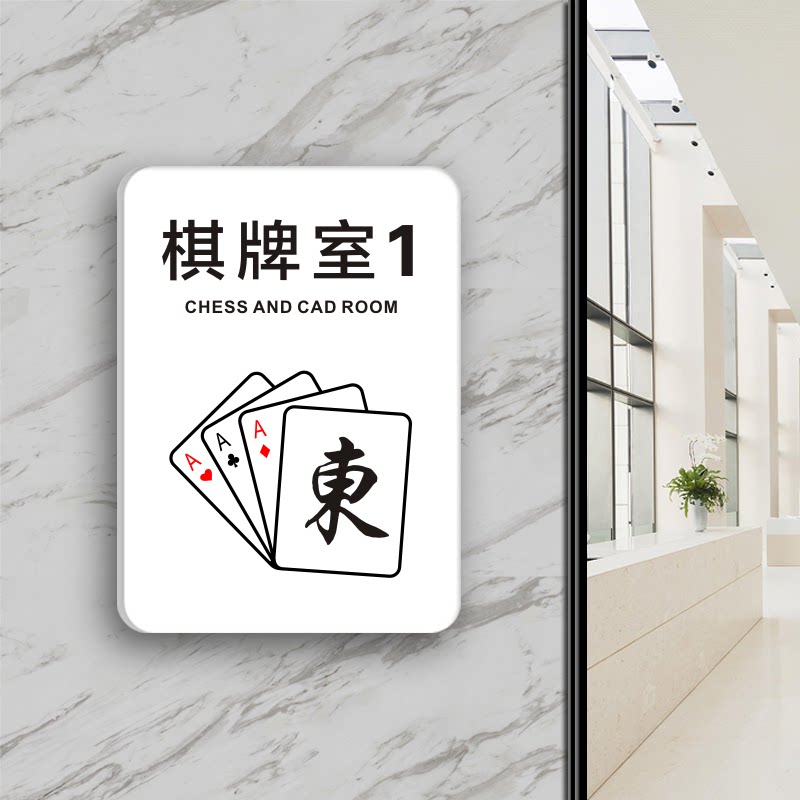 棋牌室麻将馆台球桌球室茶楼茶座雅间包厢房间号门贴请勿吸烟休闲娱乐禁止赌博提示牌创意亚克力标识门牌定做