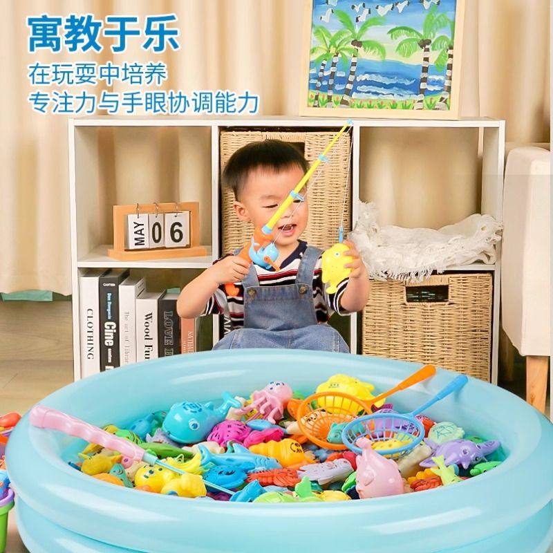 儿童磁吸鱼竿趣味钓鱼玩具2岁小女孩捞鱼池游戏男宝宝益智礼物