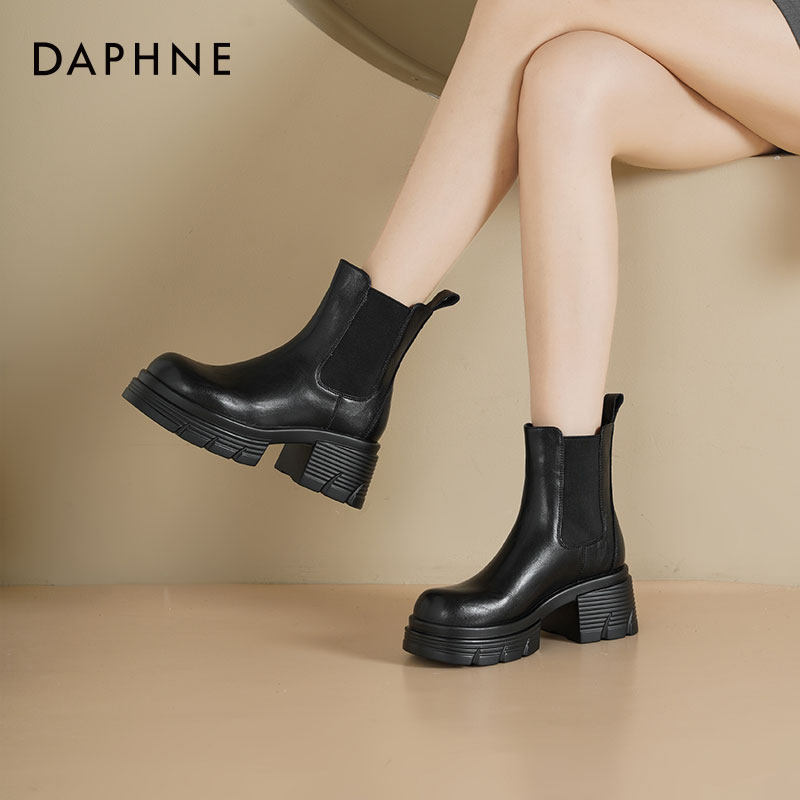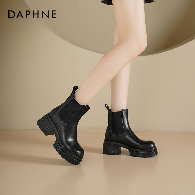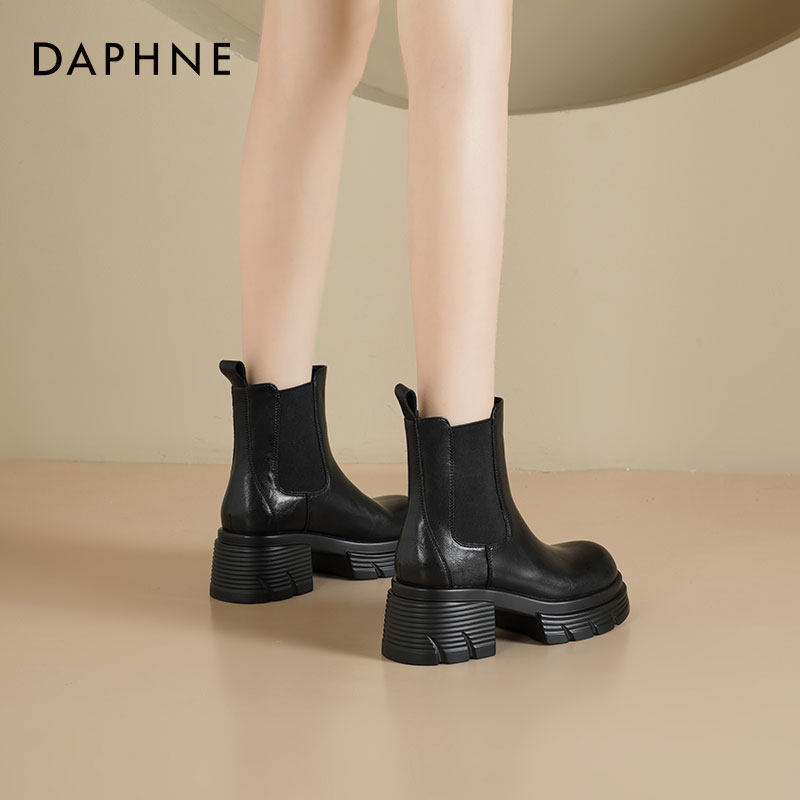 达芙妮厚底马丁靴女2026新款秋季英伦风烟筒靴黑色切尔西靴子短靴