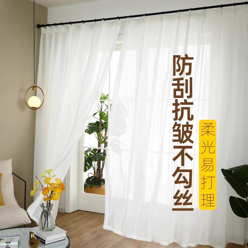 纱帘透光不透人白纱窗帘纱白色幻影飘窗阳台防晒客厅金刚防刮遮光