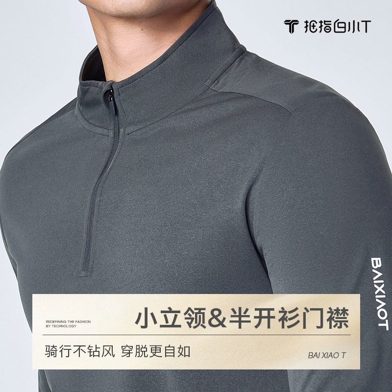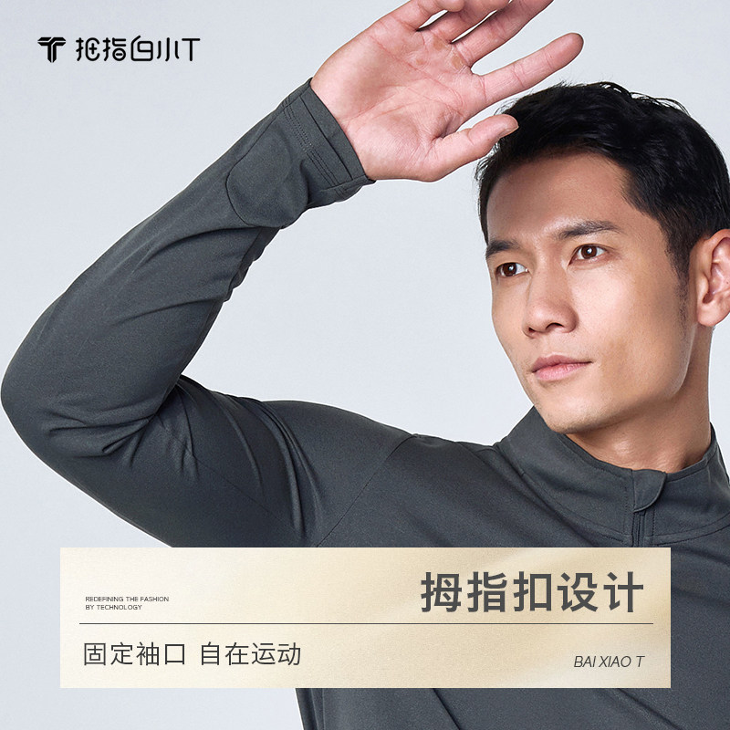 拇指白小T春季速干反光标立领长袖T恤运动休闲百搭亲肤透气体恤