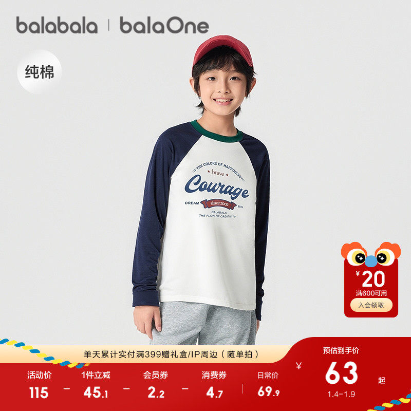 巴拉巴拉童装儿童长袖t恤2025春秋装男女童插肩袖速干纯棉上衣潮
