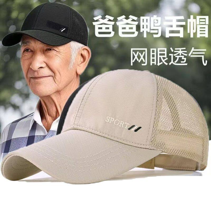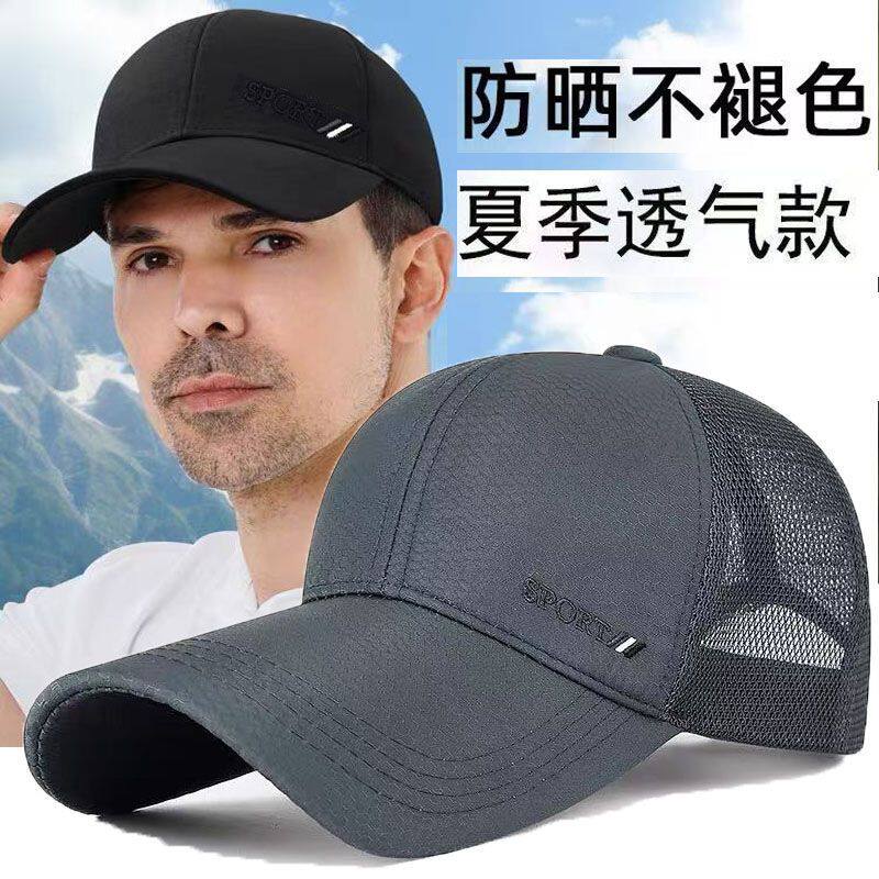 夏季帽子男士中老年鸭舌帽褪色棒球帽大头遮阳防晒透气户外网眼