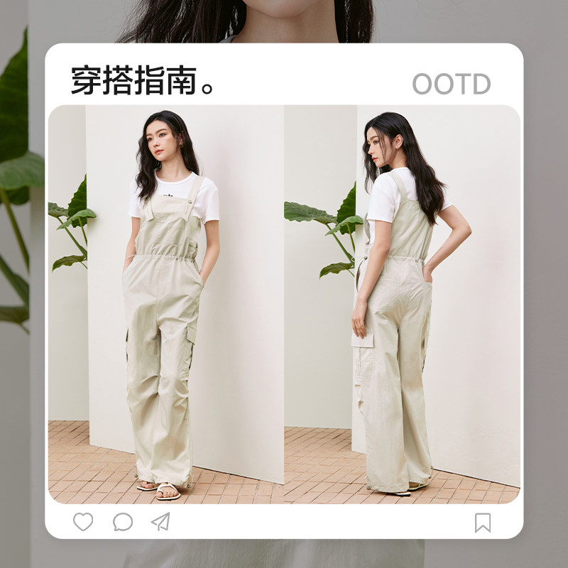爱居兔时尚背带裤女夏季新款潮流休闲户外工装风抽绳伞裤