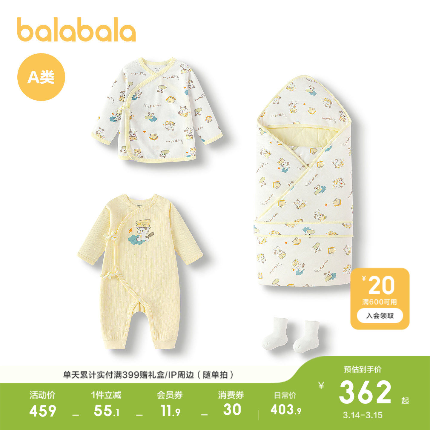 【商场同款】巴拉巴拉新生儿用品大全初生宝宝衣服满月礼四件装萌
