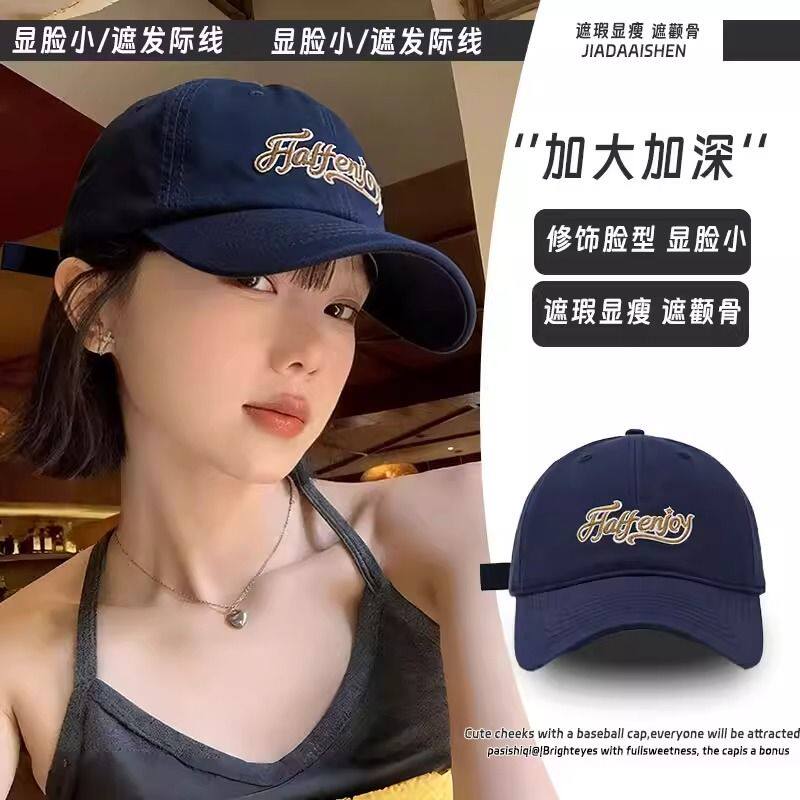 美式复古字母灰色棒球帽女高级感宽檐大头围显脸小百搭鸭舌帽子男