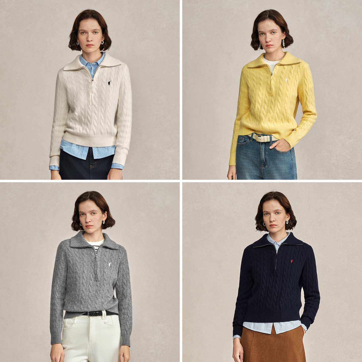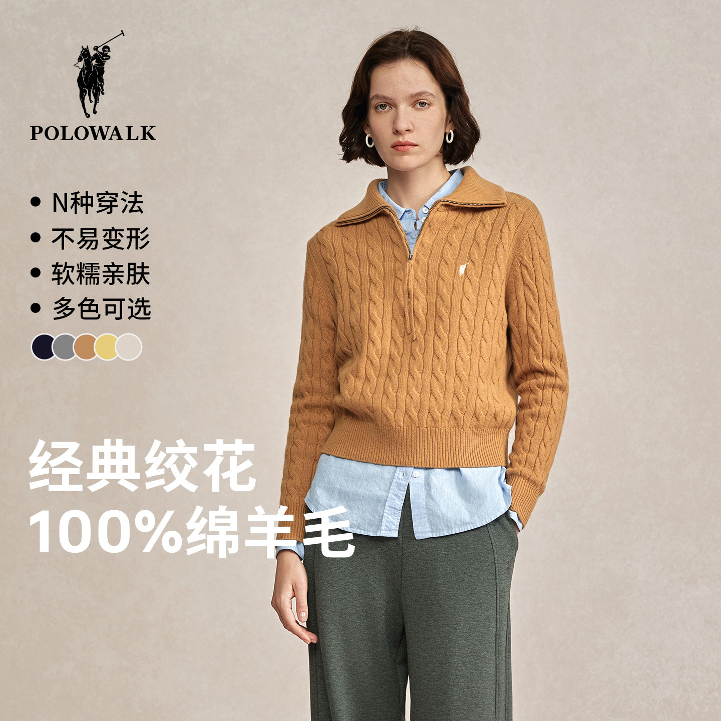 【100%绵羊毛】POLOWALK女装羊毛衫2026春季半拉链毛衣翻领羊毛衫
