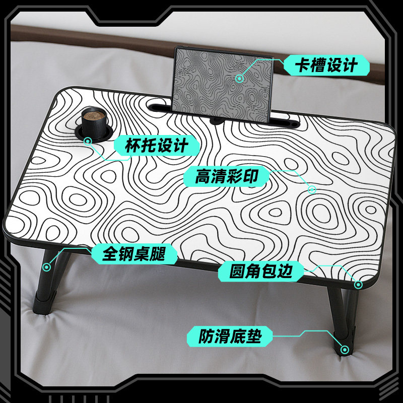 等高线床上可折叠小桌子简约高级感笔记本电脑桌小学生学习桌学生宿舍上铺懒人神器卧室坐地小桌板电脑台
