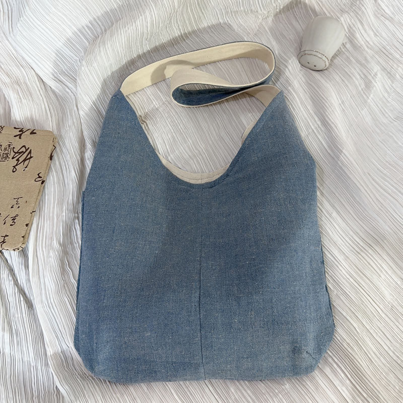 做旧复古帆布包休闲简约斜跨包大容量单肩包法式文艺棉麻布包手工