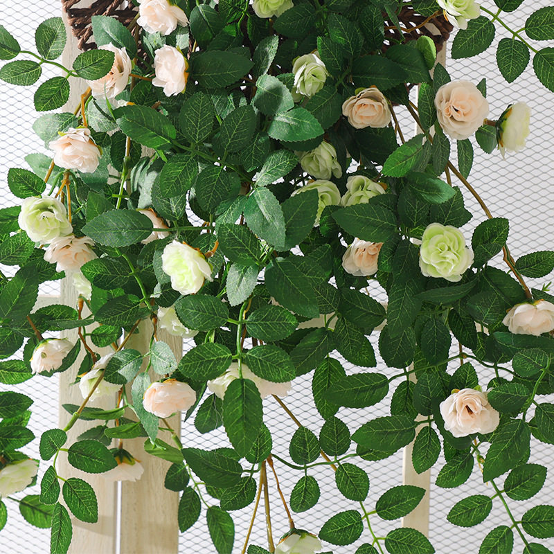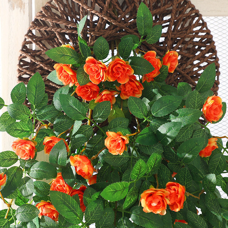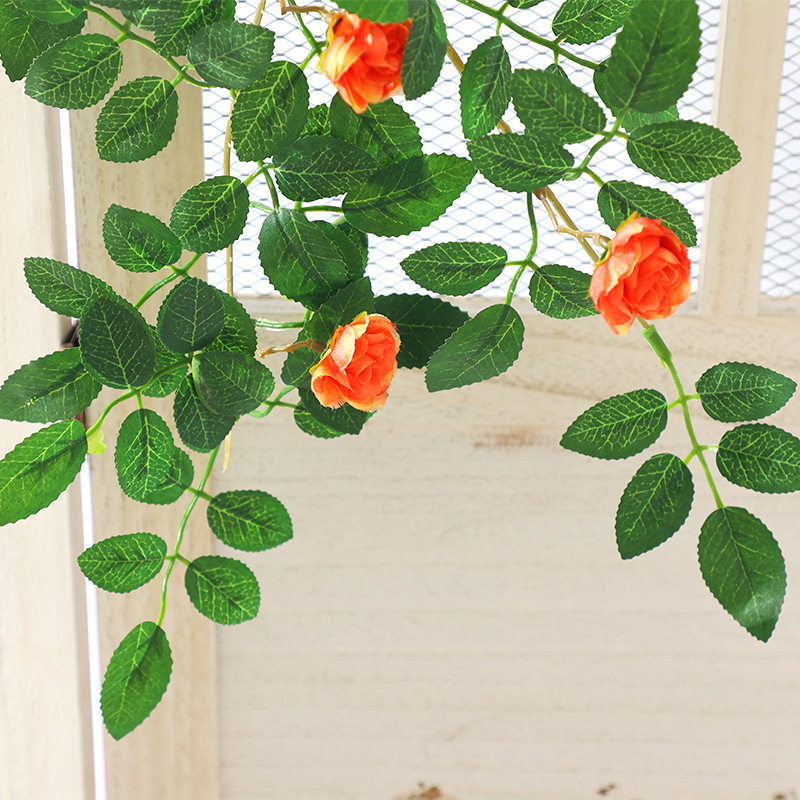 仿真蔷薇花墙面垂吊假花玫瑰藤蔓绿植塑料壁挂花装饰阳台植物室内