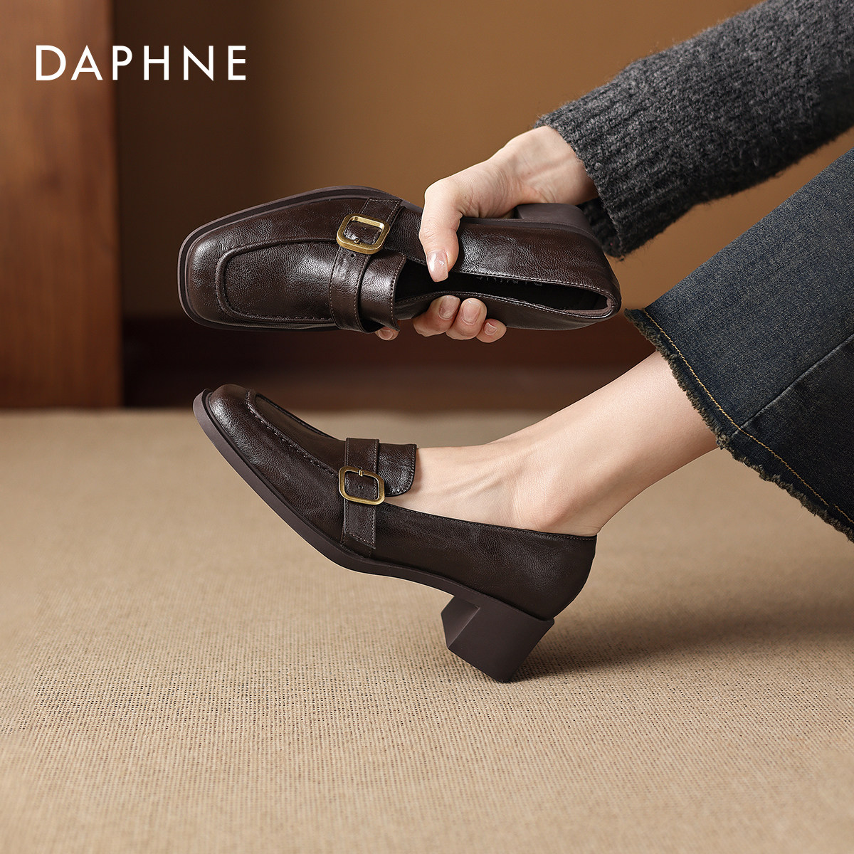 达芙妮英伦乐福鞋女2026新款春通勤女鞋一脚蹬皮带扣皮鞋粗跟单鞋