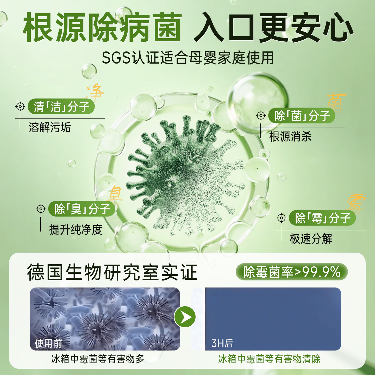 冰箱清洁剂喷雾李斯特菌消毒除味剂净化除异味厨房去污专用清洗剂