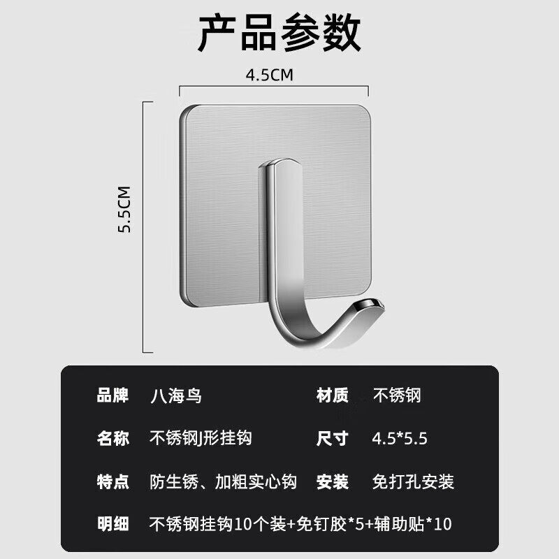 【超强承重】不锈钢挂钩10个装免打孔强力粘钩厨房免钉墙壁上