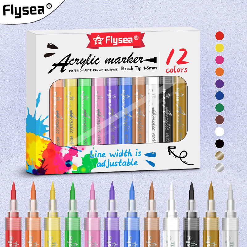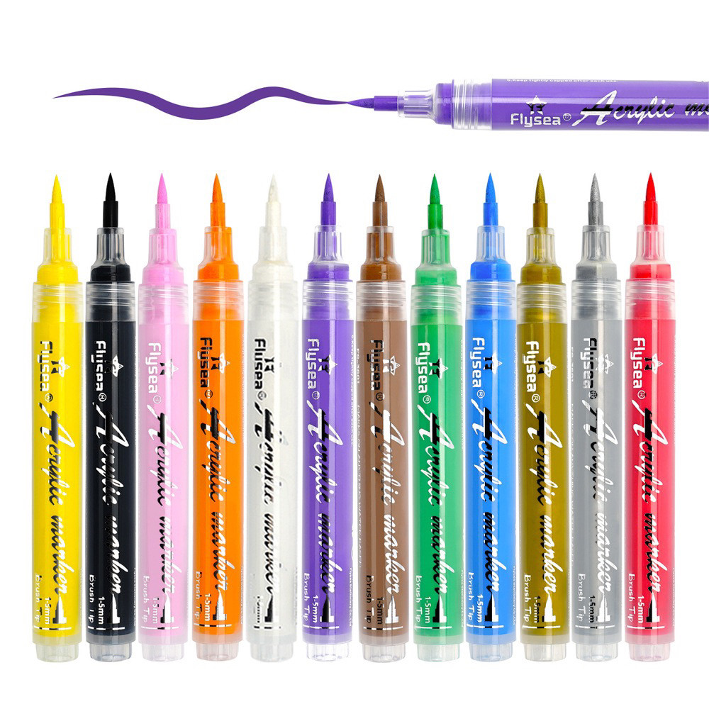 丙烯马克笔防水速干水彩笔儿童美术陶瓷石头涂鸦绘画彩色画笔套装