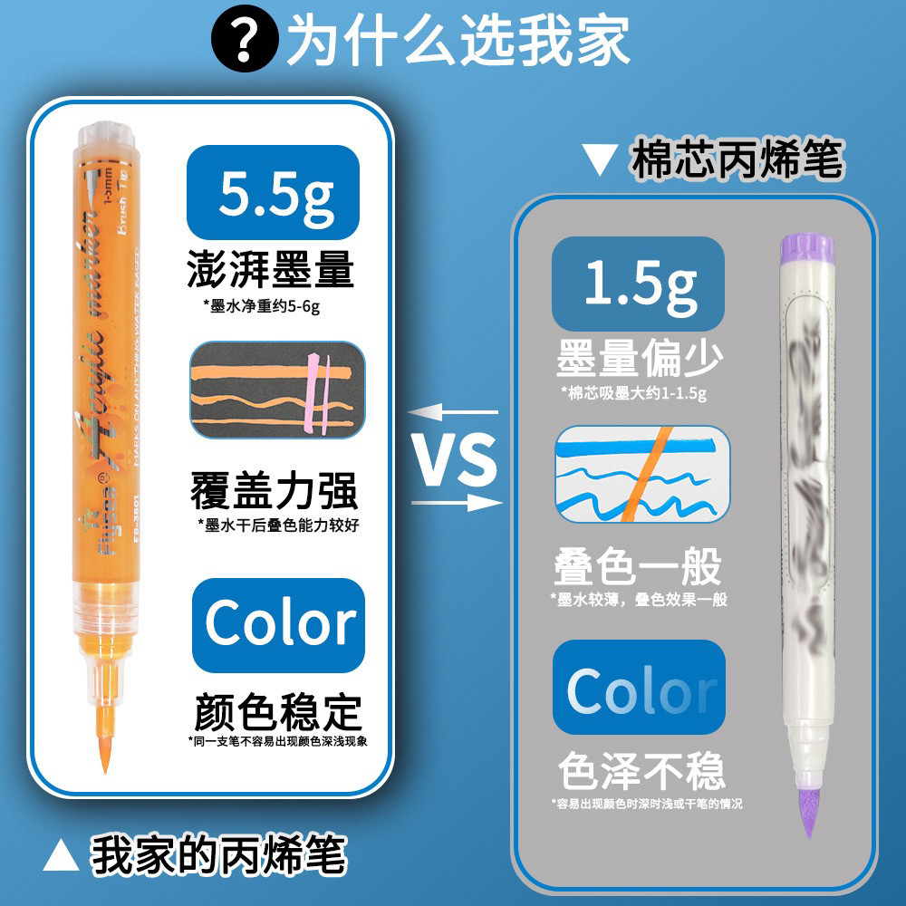 直液式丙烯马克笔软头小学生美术专用水彩笔儿童颜色笔可水洗24色画笔不透色48绘画可叠色彩色笔36水性丙烯笔