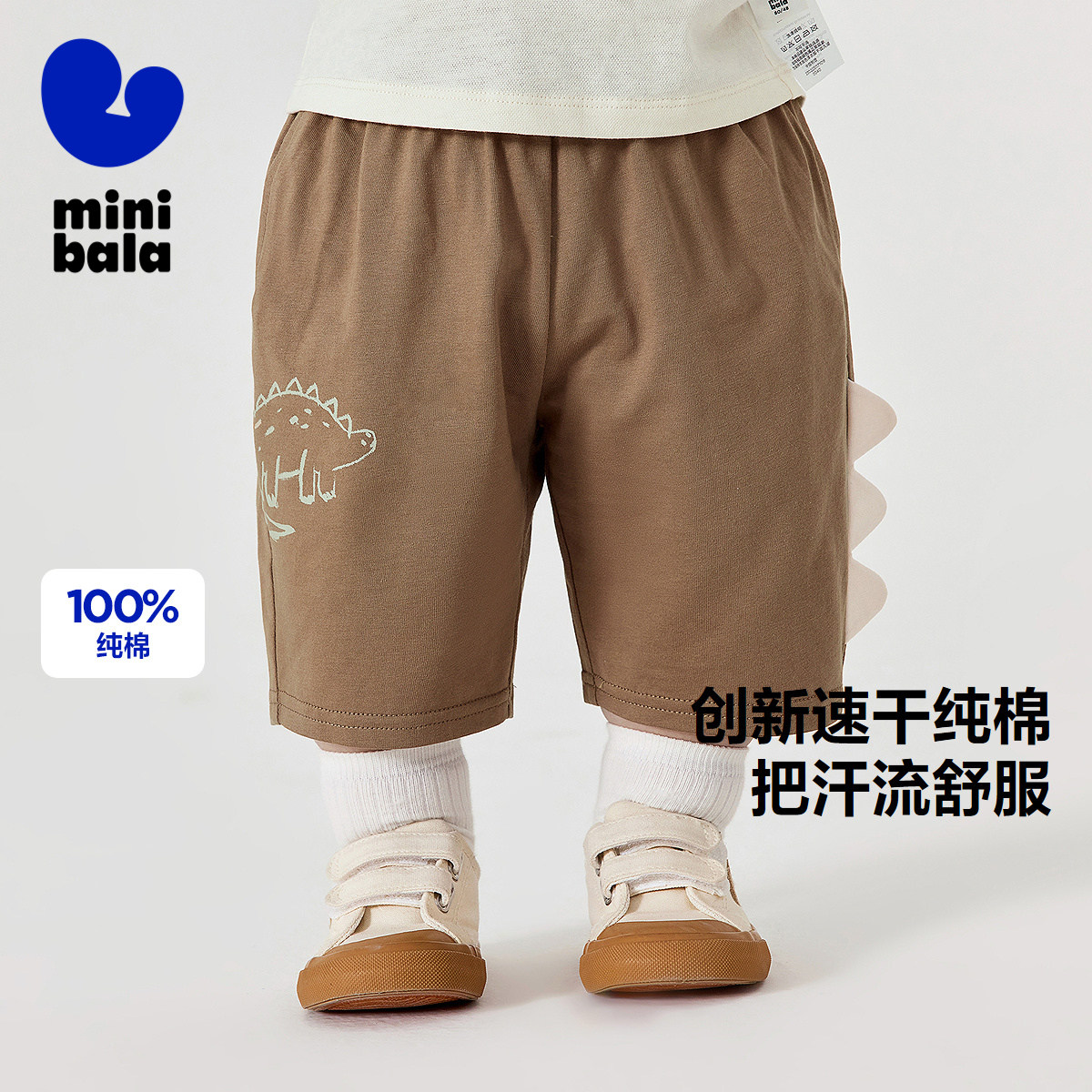 迷你巴拉巴拉男宝pp裤子夏纯棉吸湿速干裤子宽松透气萌趣七分裤