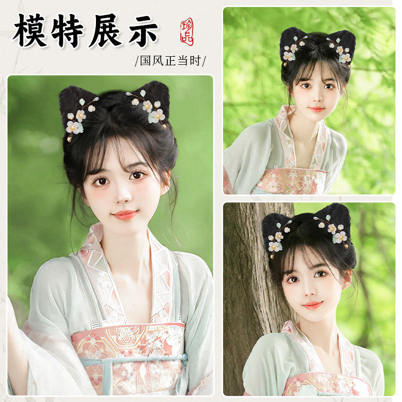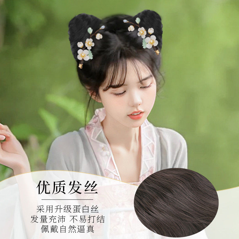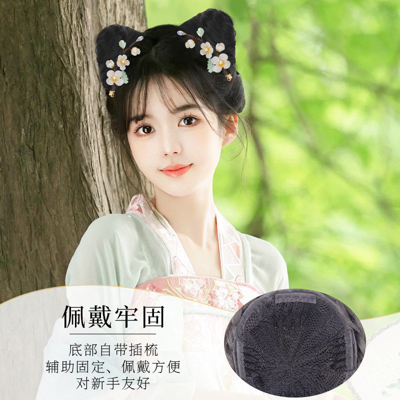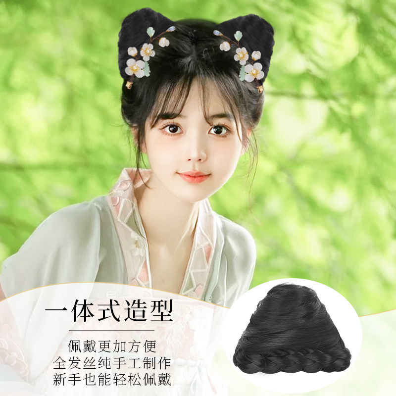 汉服假发古风猫耳一体式假发发圈抓夹丸子头古装发髻新中式垫发包
