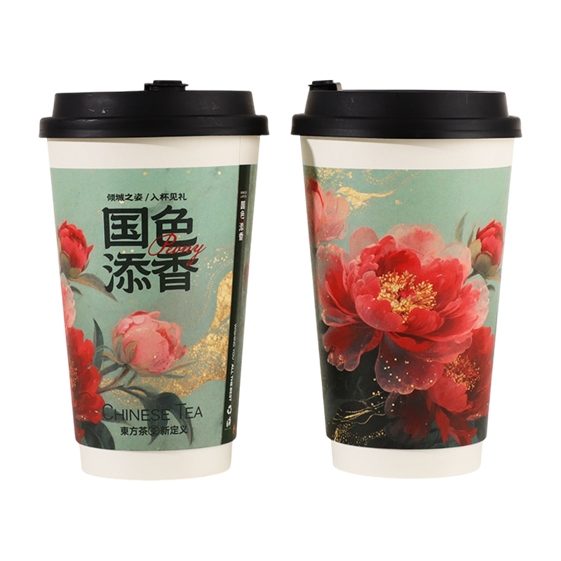 奶茶杯子一次性带盖吸管商用食品级加厚冷热饮杯专用国风纸杯双层