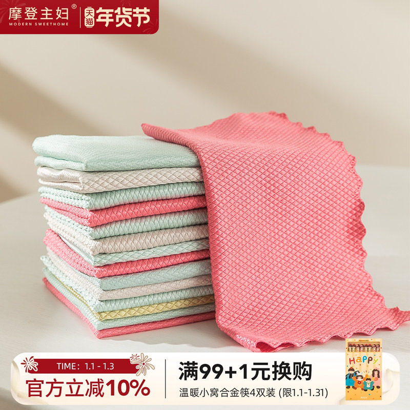 摩登主妇鱼鳞抹布无痕不留水渍吸水不易掉毛厨房清洁擦玻璃洗碗布