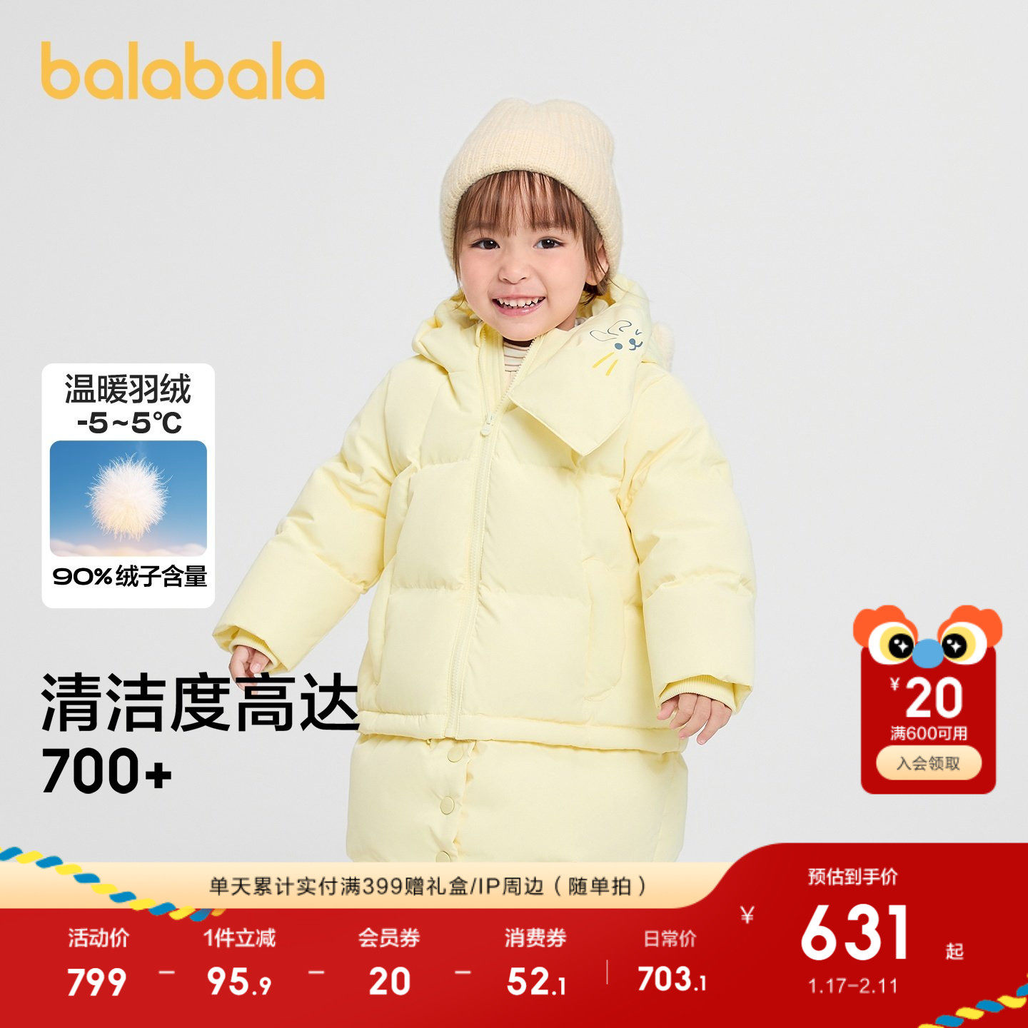 【商场同款】巴拉巴拉女童羽绒服保暖连帽外套2025新款冬装带口罩