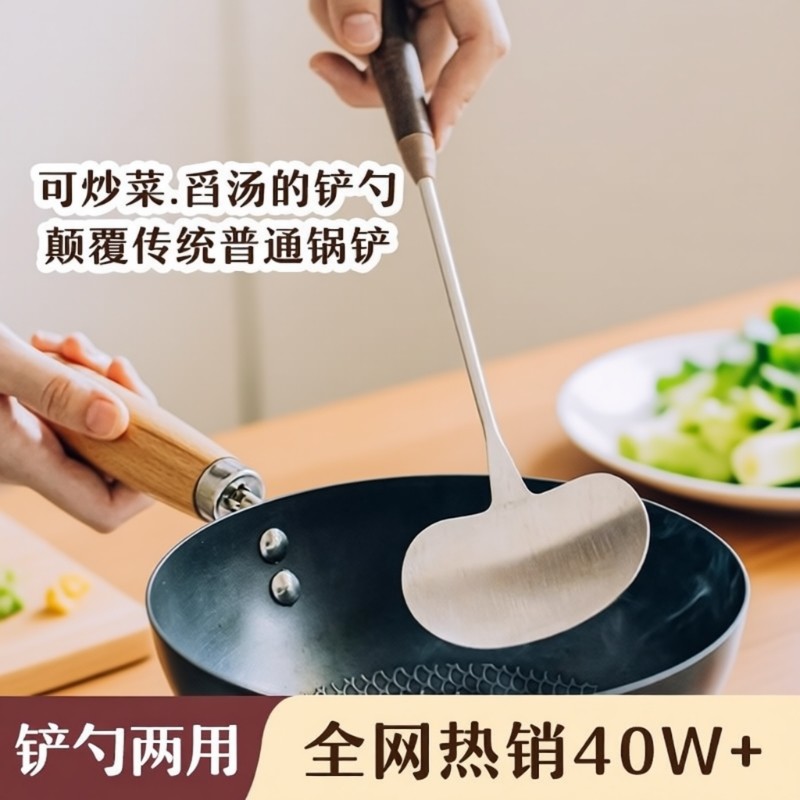 pissa胡桃木蘑菇铲子锅铲不锈钢小号家用炒勺铁铲炒菜的勺铁锅