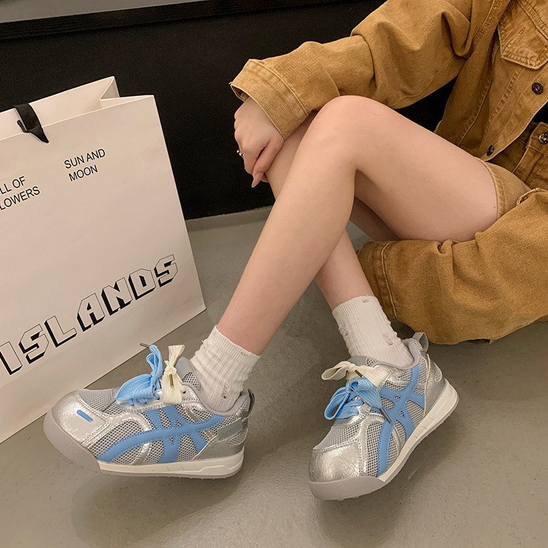 德训鞋女款夏季2026新款网面透气休闲运动阿甘鞋大头内增高女鞋子