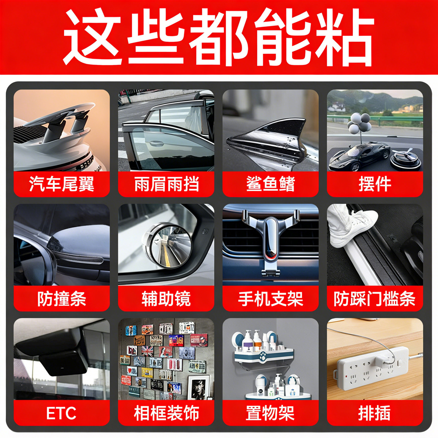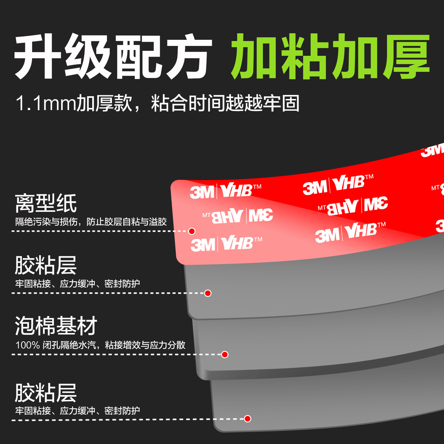 3m5952双面胶汽车专用黑色耐高温VHB加厚免打孔墙面固定车用ETC手机支架尾翼超粘防水胶带强力高粘无痕双面胶
