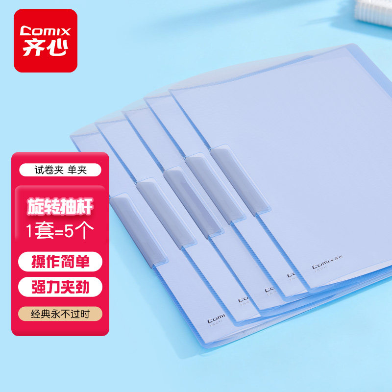 齐心A4旋转拉杆夹文件夹试卷收纳袋透明插页初中生专用资料夹小学生活页抽杆卷子夹风琴包整理神器档案夹办公