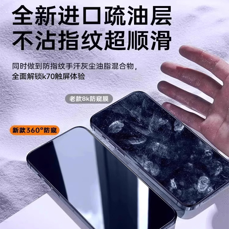 欧炫适用红米k90promax防窥膜k80pro手机膜k70钢化膜k70至尊版贴膜k70pro全屏k60保护k50s新款k40超声波解锁
