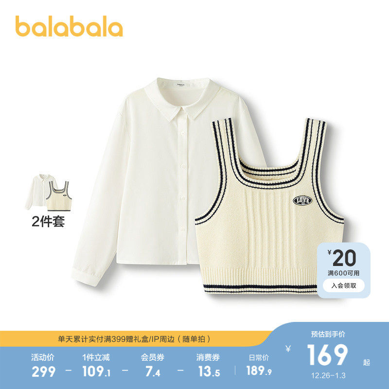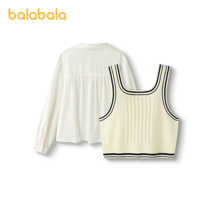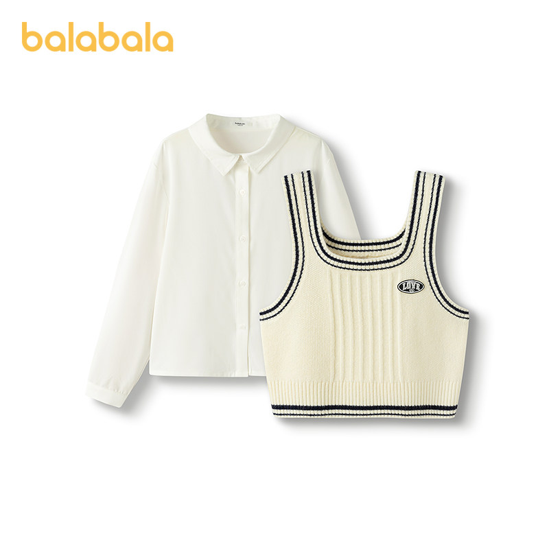 巴拉巴拉女童衬衫儿童长袖2025新款秋凉感马甲两件套