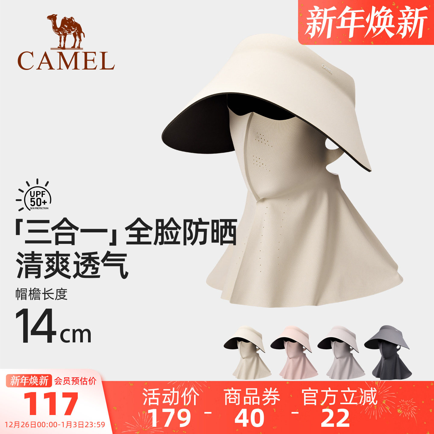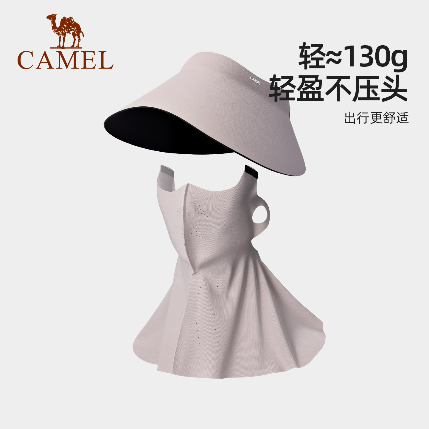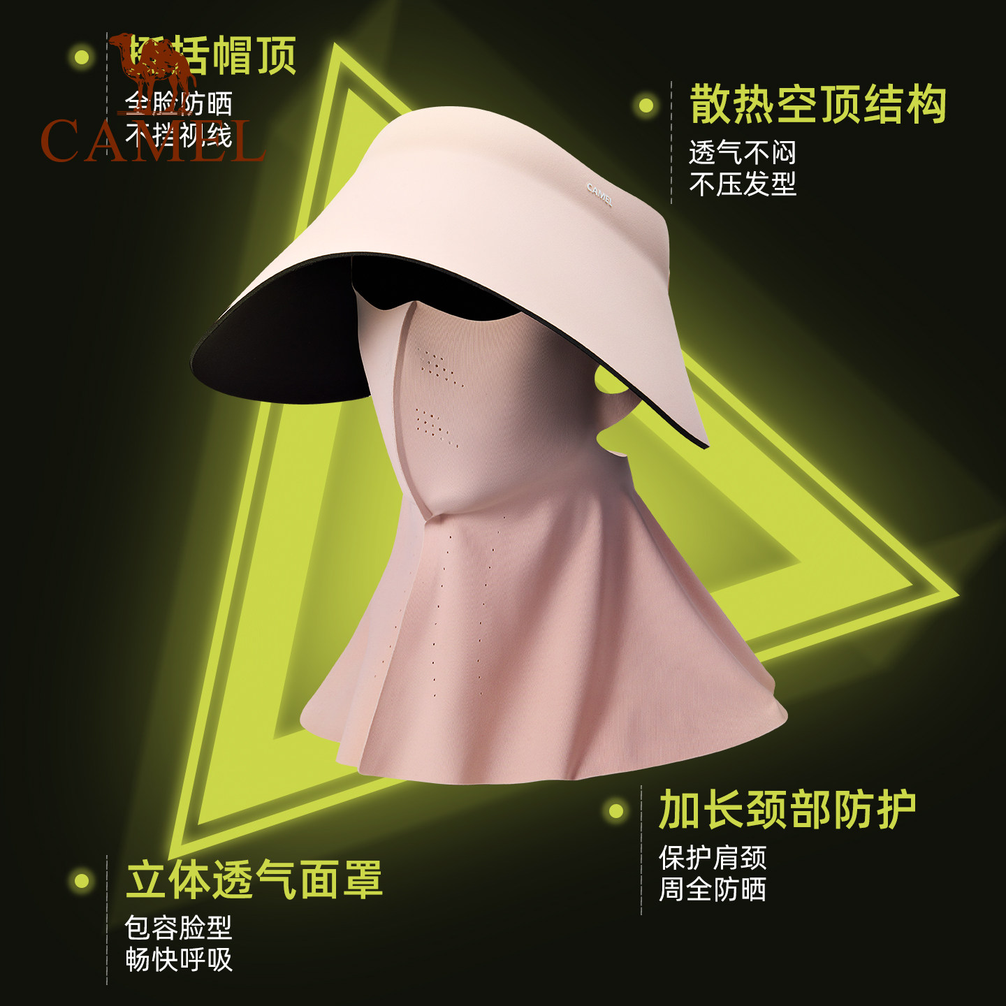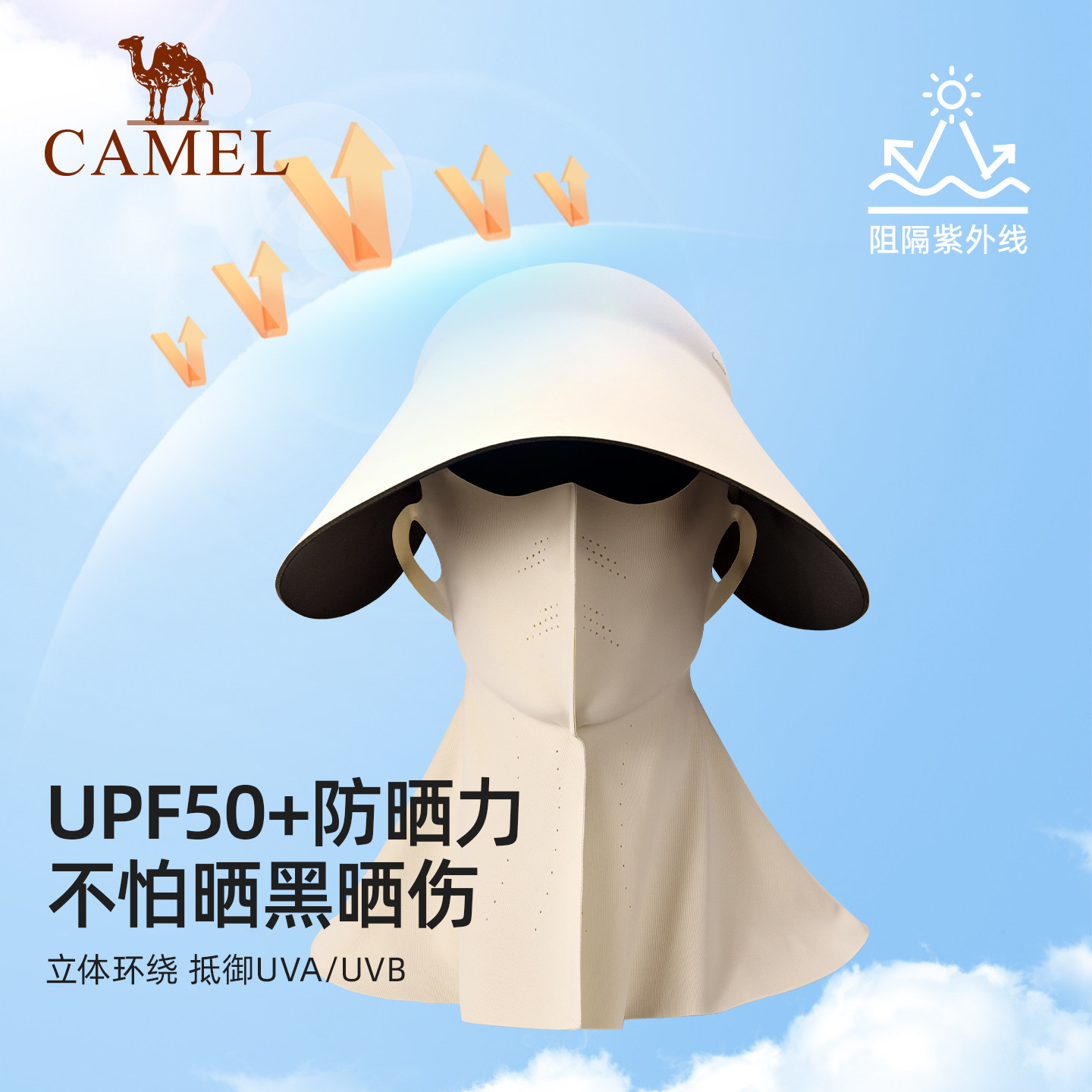骆驼空顶帽UPF50+夏新款防紫外线大帽檐带面罩护脸全方位防晒帽子