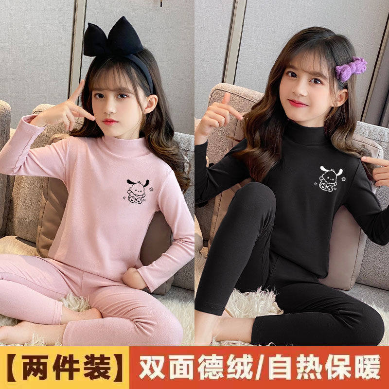 女童德绒半高领保暖内衣套装儿童防寒秋衣裤中大童加绒睡衣两件套