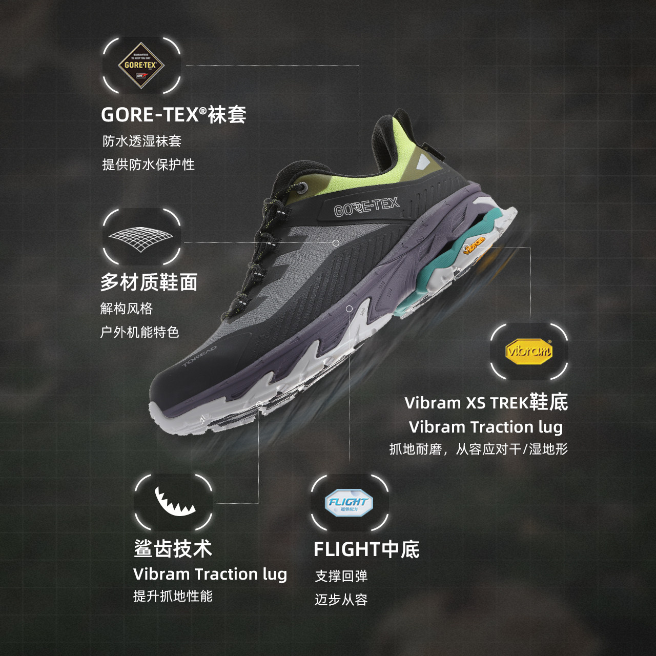 【探途】探路者徒步鞋男GORE-TEX防水透湿VIBRAM防滑耐磨运动鞋女