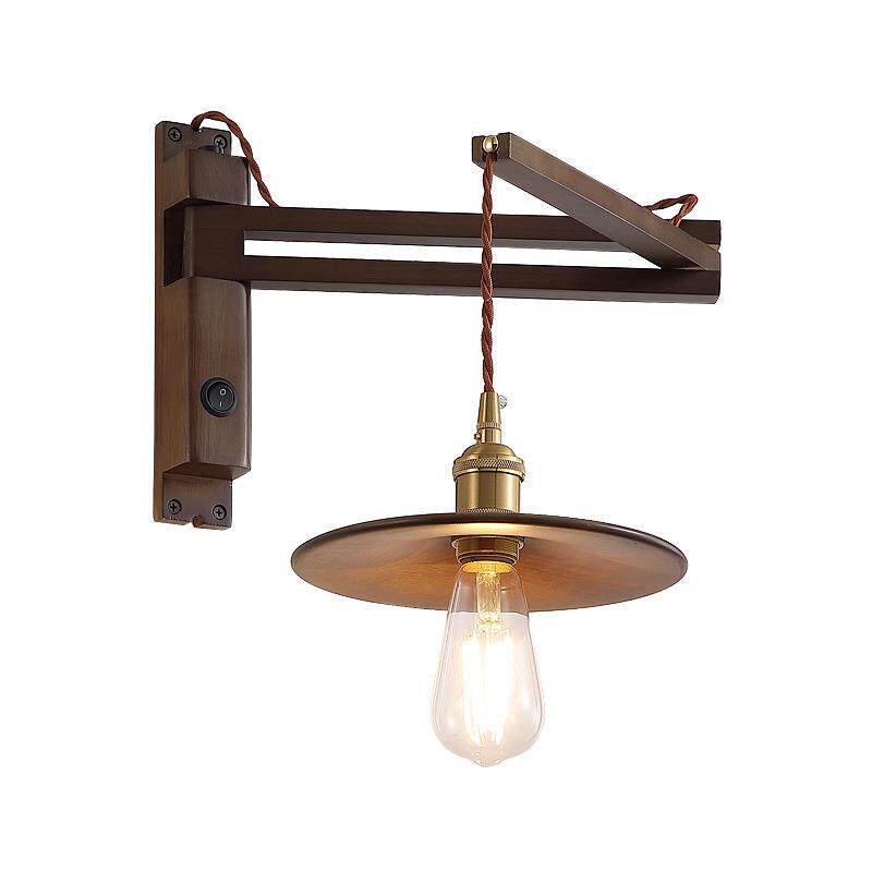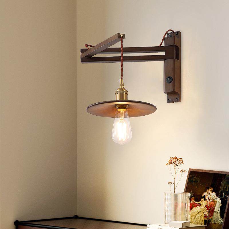 中古风折叠摇臂壁灯法式复古胡桃木色带开关卧室床头书房伸缩壁灯