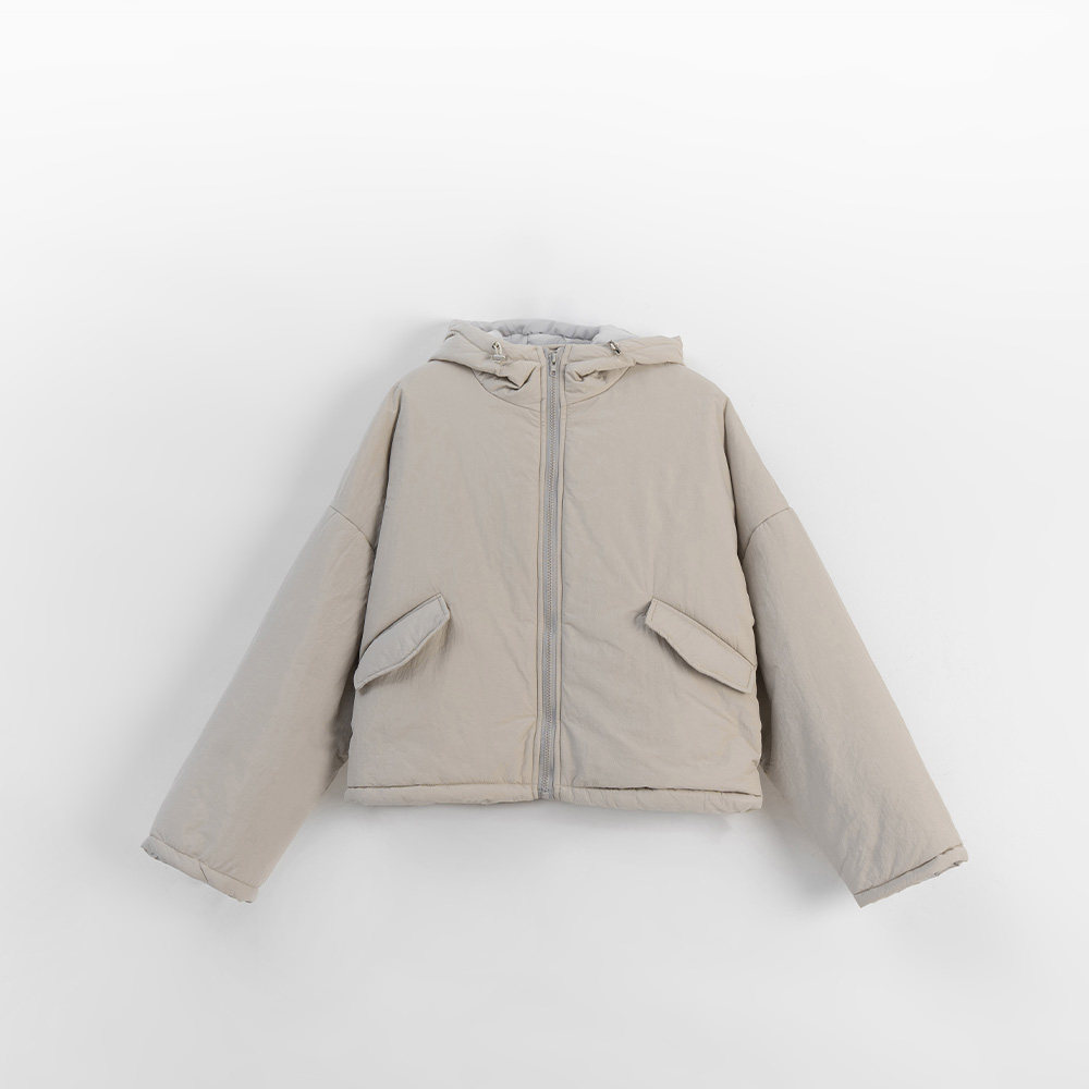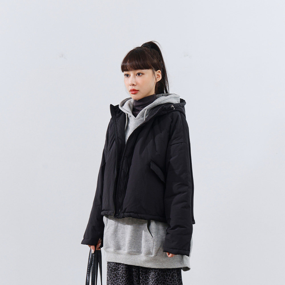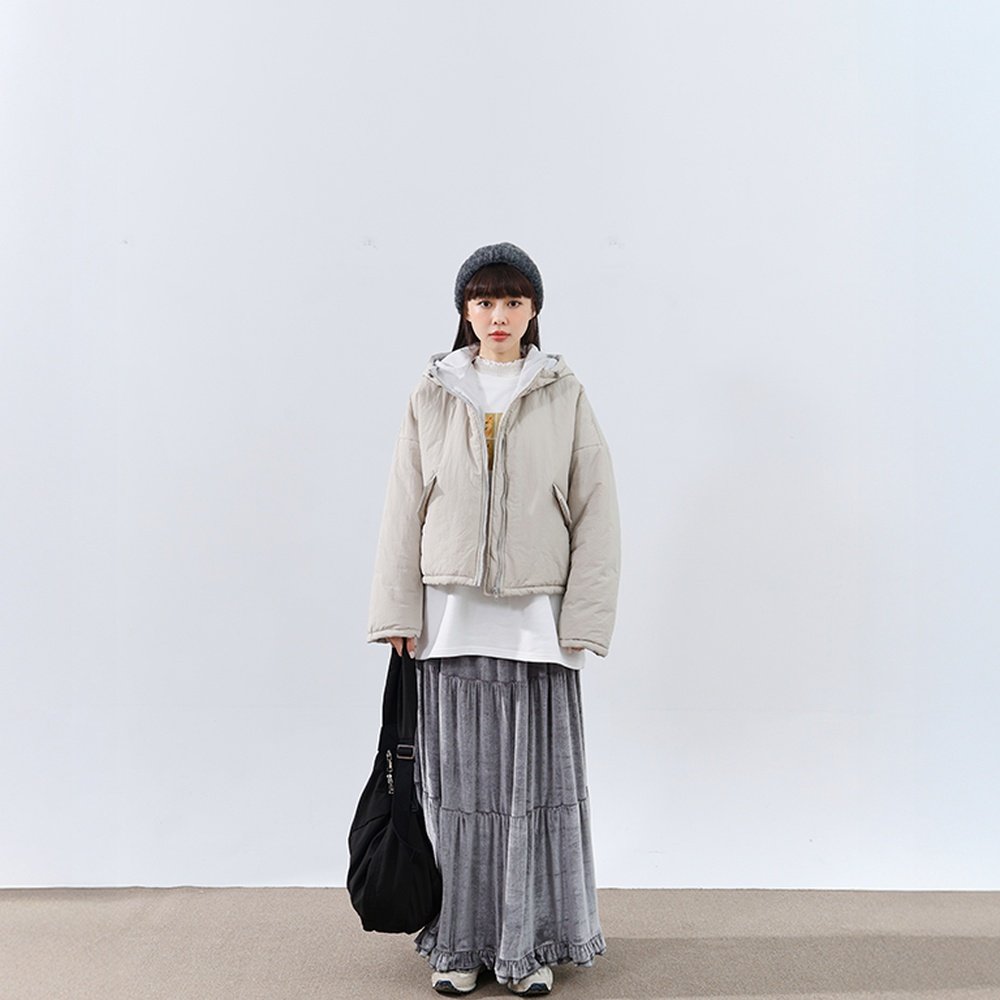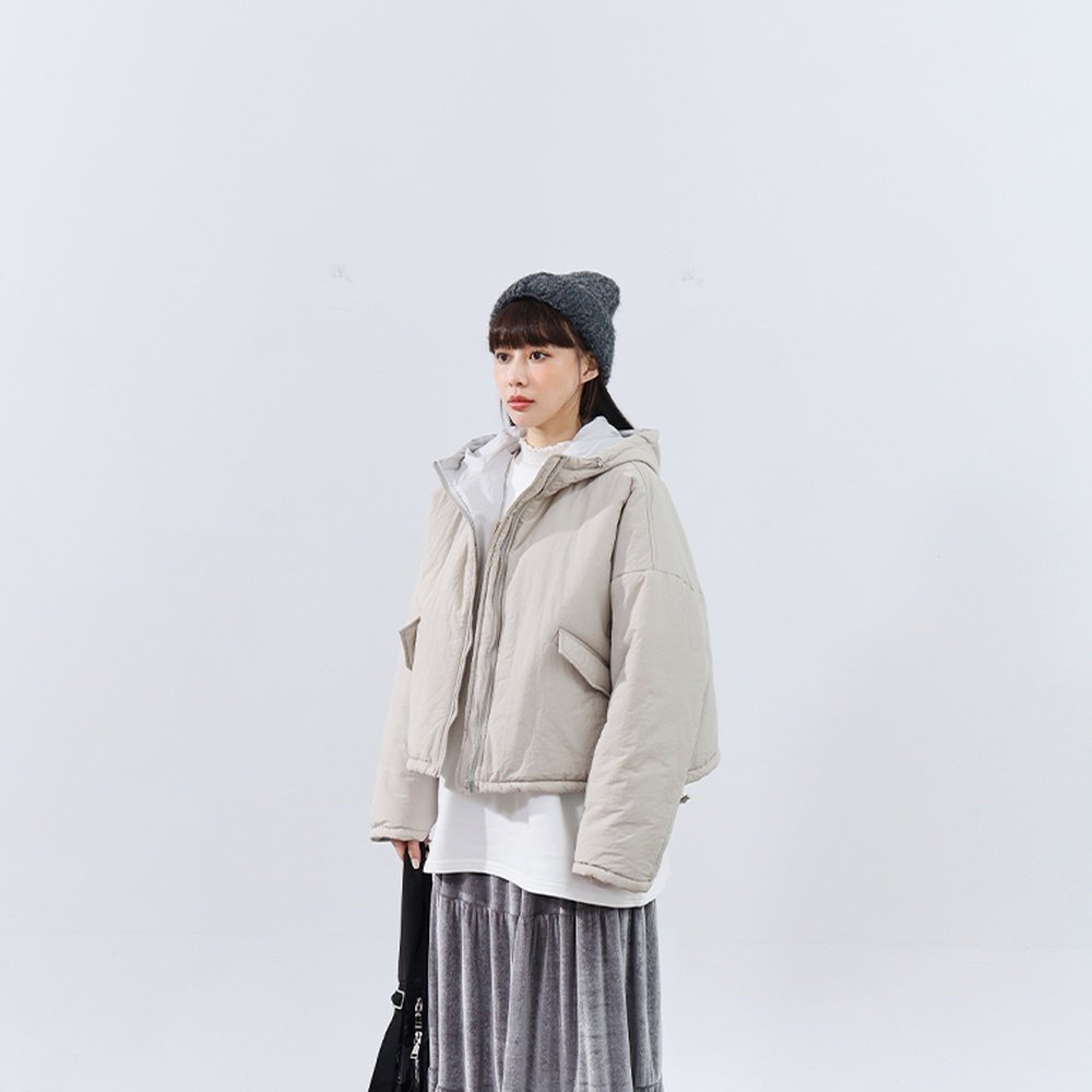 QUEENSHOP 2025秋冬新品女装素面下摆抽绳连帽铺棉外套02090084