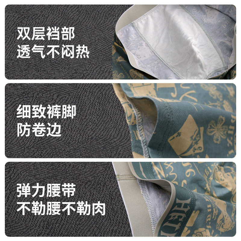 松山棉店蚕柔莫代尔男士内裤透气男生短裤青少年纯棉大码平角裤衩