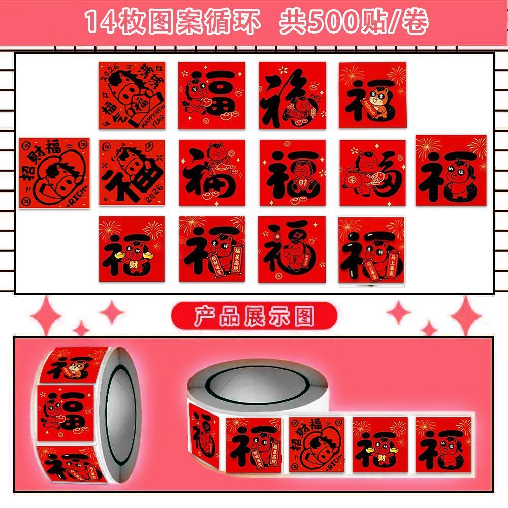 马年氛围喜庆装饰卷卷贴2026新年节日氛围福字创意装饰精美贴画