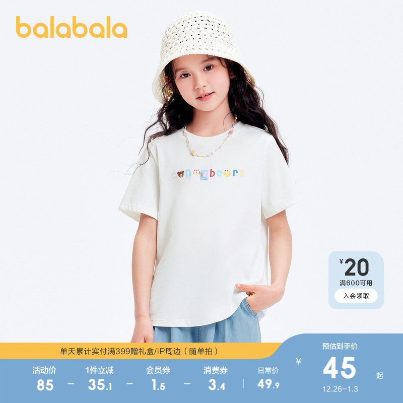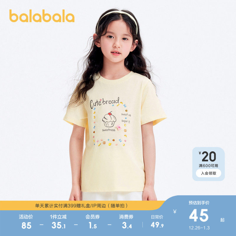 巴拉巴拉童装儿童t恤短袖女童2025夏装甜美上衣百搭纯色休闲上衣