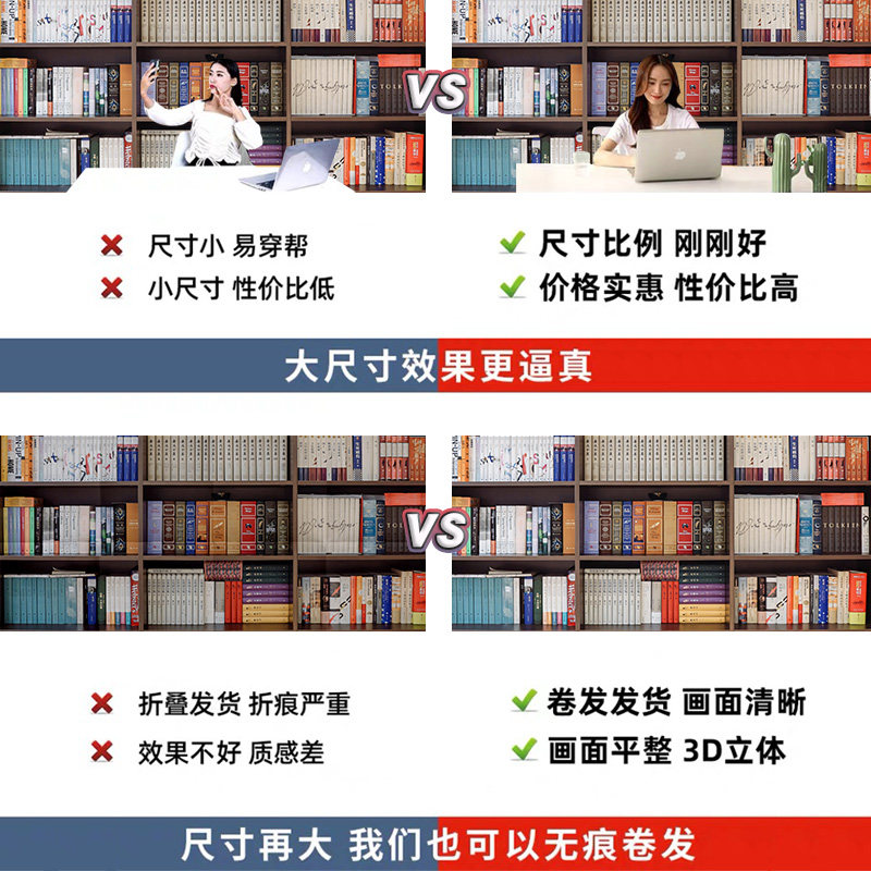 书架直播背景布办公室简约高清知识讲解坐播3d立体墙布书橱书房多风格高档高清直播背景布卧室书柜口播室内