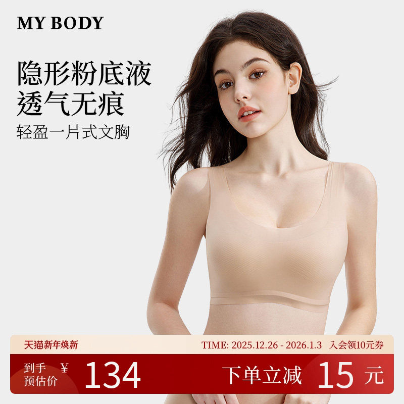 MYBODY商场同款粉底液内衣隐形无痕薄款一片式背心文胸防下垂胸罩