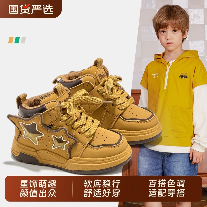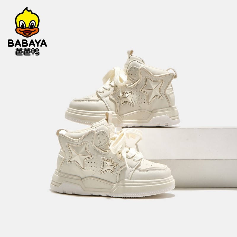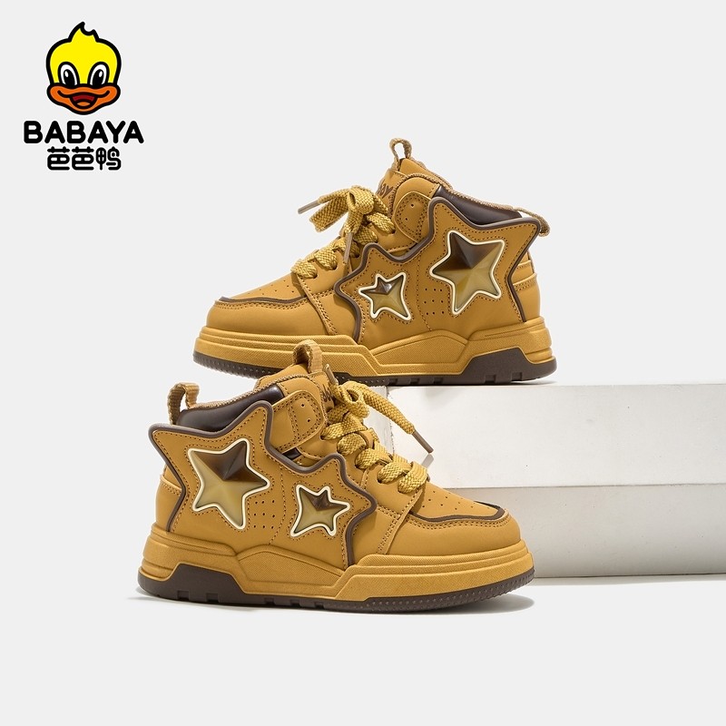 芭芭鸭儿童板鞋2025新款百搭款星星小黄靴女童鞋秋冬季男童休闲鞋